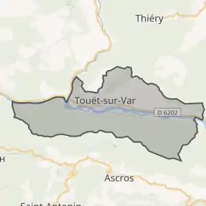 - Розташування муніципалітету Туе-сюр-Вар на мапі Франції та сусідні муніципалітети