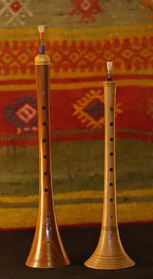 Має три види: карги-туйдук — поздовжня відкрита флейта з мундштуком, 6-7-ма ігровими отворами. Звук несильний, шиплячий; дилі-туйдук — язичковий інструмент з відкритим стволом, 3-4-ма ігровими отворами. Звук різкий, гугнявий; гошадилі-туйдук — подвійний різновид дилі-туйдук. Усі різновиди туйдуків застосовуються як сольні та акомпануючі інструменти.