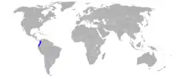 Вид поширений на заході Колумбії та Еквадору. Мешкає у вологих тропічних лісах реогіну Чоко.