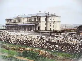 До 1868 року було побудовано двоповерхову кам'яницю з красивим фасадом і високими напівовальними вікнами, які пропускали багато світла і надавали конструкції легкість, та антресолями в кінцевих його частинах. Різоль його головного входу був суворим і монументальним. В середині вокзалу розташовувались приміщення для пасажирів 1-го, 2-го та 3-го класу, буфет і ресторан. У будівлі були також розташовані службові та складські приміщення. Для очікування потягів, на платформі біля будівлі вокзалу, були зроблені навіси. У легкому дерев'яному павільйоні, які перебували зліва від будівлі вокзалу знаходилося багажне відділення.