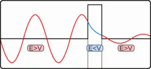 З цього рівняння видно, що сліва від бар'єру, хвильова функція представлена суперпозицією двох хвиль, хвилі, що рухається вправо (eikx) і хвилі, що рухається вліво (e-ikx). Ці компоненти можна співставити з падаючою і відбитою хвилею. Але з другого рівняння, для х>0, можна бачити, що хвильова функція проникає за бар'єр, і експоненційно спадає у цій зоні. Для великих значень x, амплітуда ймовірності частинки прямує до нуля. Так само, оскільки q прямує до нескінченності при зростанні U0, для нескінченно високого бар'єру тунелювання також не відбувається. Ці два випадки відповідають класичному переходу у поведінці частинки.