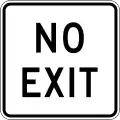 Правила Федеральної адміністрації автомобільних доріг США стверджують: «Знак „Тупик“ може використовуватися на в'їзді на одну дорогу або вулицю, яка закінчується в тупик або в глухий кут. Знак „немає виїзду“ може використовуватися на в'їзді в дорогу або дорожню мережу, з якої немає іншого виходу». Не існує федерального регулювання щодо «немає виходу».[42]