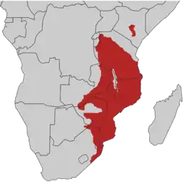 поширений в Бурунді, Кенії, Малаві, Мозамбіку, Руанді, ПАР, Есватіні, Танзанії, Уганді, Замбії та Зімбабве. Південна межа ареалу знаходиться на річці Мтамвуна на кордоні Квазулу-Наталу та Східної Капської провінції.[4]