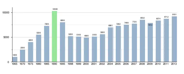 Число іноземних туристів (у тисячах), що відвідали Болгарію за роками: