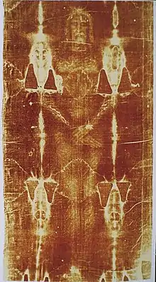 У 1898 році фотограф Секондо Піа зробив знімок Плащаниці. Під час роботи з негативом на зображенні чітко проступило позитивне зображення обличчя. Негативне відтворення виявилося позитивним і дало змогу розгледіти не лише на обличчі, але й у фігурі такі деталі, які раніше побачити було неможливо.