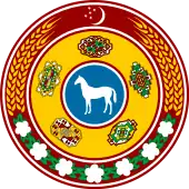 | Прапор Туркменістану | Герб Туркменістану | Герб Туркменістану (1992—2000) | Герб Туркменістану (2000—2003) | Герб Туркменістану як республіки СРСР (1937-1991) та після проголошення незалежності Туркменістану (1991-1992) |