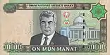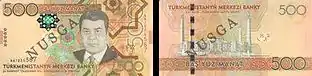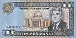 портрет Сапармурата Ніязова | Мечеть Туркменбаші Рухи | купюру не було пущено в обіг | |