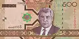500 | 156×78 | вишневий | портрет Сапармурата Ніязова, будівля Національного Театру |