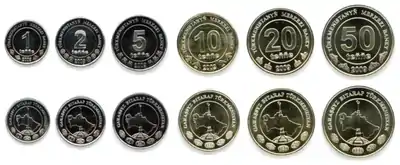 | Монети | 50, 20, 10, 5 і 1 тенне |
