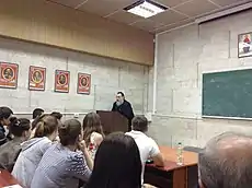 | Отець Рафаїл Турконяк на зустрічі зі слухачами курсів англійської мови Інституту післядипломної освіти, студентами, викладачами і співробітниками Національного університету «Львівська політехніка» 14.05.2013 р. | ||