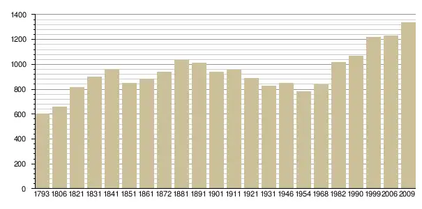 Динаміка населення (base Cassini de l'EHESS pour les nombres retenus jusque 1962[3], base Insee à partir de 1968 (population sans doubles comptes puis population municipale à partir de 2006)[4] · [5] ):