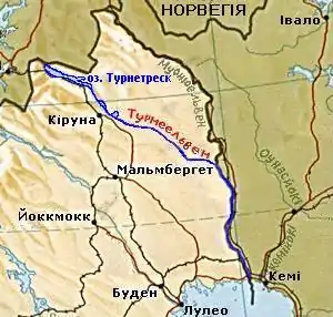 ![]() Озеро Турнетреск на карті річки Турнеельвен. | ||||