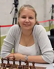 | 3 | Олександра Костенюк | 2546 | 1 | 0 | ½ | ½ | ½ | ½ | ½ | 0 | ½ | 0 | 1 | 0 | 1 | 0 | 3 | 5 | 6 | 6 | 7 | 2480 | ||||