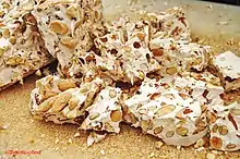 Назви іншими мовами: італ. torrone — «торро́не», фр. nougat, touron — «нуґа́, туро́н», нім. türkischer Honig — «тюркішер хонік, турецький мед», порт. torrão de Alicante або terrum — «турро́н де Аліканте, терру́н», у Бразилії — Mandolate — «мандула́те».
