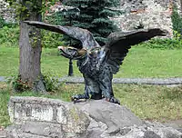 ![]() Скульптура турула в Татабаньї | ![]() Статуя турула в Ужгородському замку. |