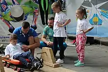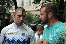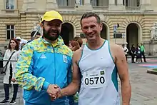 Юрій Турянський з учасником забігу з нагоди Дня фізичної культури 8 вересня 2018 р. біля пам'ятника Франку