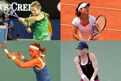 Жустін Енен (нар. 1 червня 1982 року в Льєжі), колишня 1-ша ракетка світу в одиночному розряді і володарка 43-х титулів WTA, включаючи: 7 титулів Великого шолома, 2 чемпіонаті кінця року, золота медаль Олімпійських ігор 2004, а також два титули в парному розряді. Вперше Енен завершила кар'єру 2008 року в ранзі 1-ї ракетки світу, але потім 2010 року повернулася. Після повернення виграла два титули WTA: Porsche Tennis Grand Prix 2010 і UNICEF Open 2010. Також досягнула фіналу Brisbane International 2010 і фіналу Відкритого чемпіонату Австралії 2010. Свій останній матч зіграла проти Світлани Кузнецової в третьому колі Відкритого чемпіонату Австралії 2011, поступившись 4–6, 6–7(8). Завершили кар'єру її змусила травма. якої спортсменка зазнала на Вімблдоні 2010.[8]