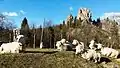 Вівці відпочивають біля скель