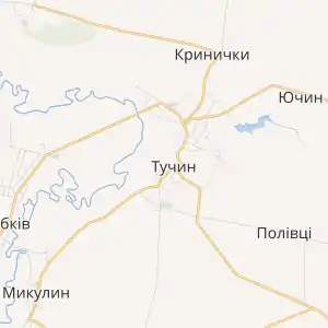 ![]() Вид на Тучин з вежі мобільного зв'язку. | |
