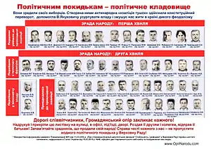 | 34 | Віктор Павленко | БЮТ | 1 лютого 2011** (також вийшов та в той же день знову увійшов у БЮТ 16 листопада 2010)[99] | Фракція Партії Регіонів[100] |