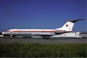 Ту-134 (по кодифікації НАТО: Crusty — «Жорсткий») — радянський пасажирський літак для авіаліній малої і середньої протяжності, розроблений на початку 1960-х років в ДКБ ім. Туполєва і випускався серійно з 1965 по 1984 рік на Харківському авіаційному виробничому об'єднанні (повністю виробництво було припинено в 1989 році[2]). Один з наймасовіших пасажирських літаків, що збиралися в Радянському Союзі. Всього було побудовано 852 літака всіх модифікацій. Перший політ виконав 29 липня 1963, в експлуатації з вересня 1967-го. Ту-134 поставлявся на експорт в країни соцтабору.