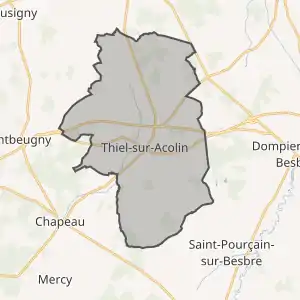 - Розташування муніципалітету Тьєль-сюр-Аколен на мапі Франції та сусідні муніципалітети