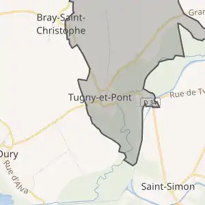 - Розташування муніципалітету Тюньї-е-Пон на мапі Франції та сусідні муніципалітети