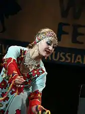 A female Chuvash dancer in traditional dress.