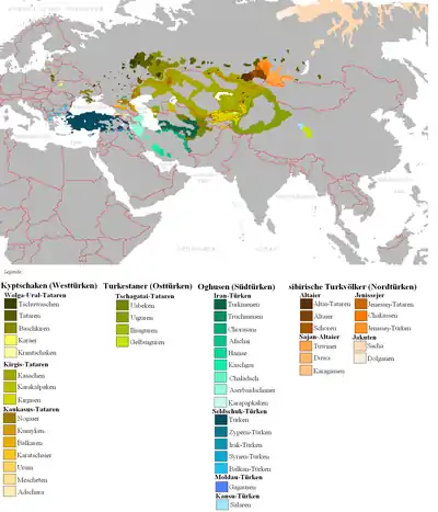 Розселення тюркських народів у світі на початок 21 століття.