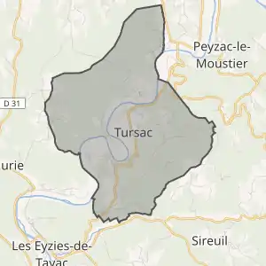 - Розташування муніципалітету Тюрсак на мапі Франції та сусідні муніципалітети
