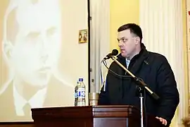 […]Вони не боялися, як і ми зараз не маємо боятися, вони взяли автомат на шию і пішли в ті ліси, вони готувалися і боролися з москалями, боролися з німцями, боролися з жидвою і з іншою нечистю, яка хотіла забрати в нас нашу українську державу. […] і треба віддати Україну, нарешті, українцям. […] Оті молоді люди, і ви, сивочолі, оце є та суміш, якої найбільше боїться москальско-жидівська мафія, яка сьогодні керує в Україні[44]