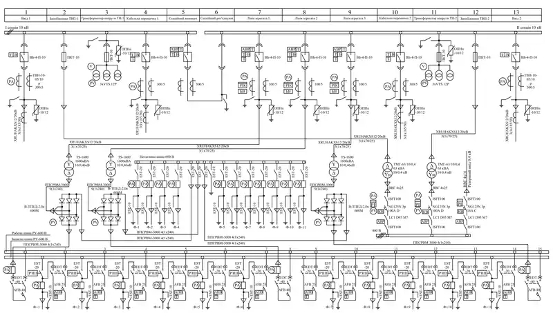 Через комутаційну апаратуру струм з кабелів подається на розподільче устаткування (РУ) 6(10) кВ.