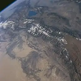 Тянь-Шань — потужна гірська система в Центральній Азії. Довжина 2450 км, ширина коливається від 350 км у центральної частині до 500 км на сході і заході, висота до 7439 м (пік Перемоги). Пік Хан-Тенгрі — 6995 м. До системи Тянь-Шаню входить понад 30 вершин висотою більше 6000 м. Льодовики загальною площею 7,3 тис. км2. Характерні пустельні, напівпустельні та степові ландшафти, а також високо підняті (3000-4000 м) вирівняні поверхні — сирти. Тянь-Шань входить до складу Урало-Монгольського (Охотського) складчастого геосинклінального пояса. Гороутворення, що створило сучасний високогірний рельєф, почалося в олігоцені і особливо виявилося в пліоцені і антропогені. Тянь-Шань — район активної сейсмічної діяльності. Родовища свинцю, цинку, нафти, газу, кам'яного вугілля, руд ртуті, стибію, олова, вольфраму, кобальту, поліметалічних руд, а також колчеданні, мідно-порфірові родовища. Багато родовищ нерудних будівельних матеріалів: мармуру, вапняків, ґіпсу. Відомо більше 100 виявів прісних і мінеральних вод.