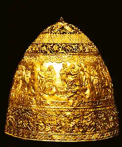 Тіара Сайтаферна виконана у формі куполоподібного парадного шолома, що складається з декількох орнаментальних і фігурних поясів із зображенням сюжету грецької легенди про місто Троя, описане в «Іліаді» Гомера.