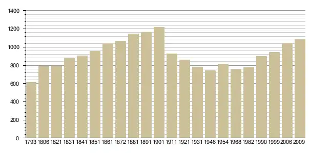 Динаміка населення (base Cassini de l'EHESS pour les nombres retenus jusque 1962[3], base Insee à partir de 1968 (population sans doubles comptes puis population municipale à partir de 2006)[4] · [5] ):