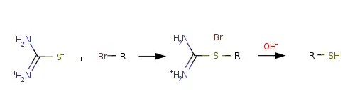Зручнішим методом синтезу тіолів є алкилювання тіосечовини з утворенням алкілтіуронієвих солей та їх подальшим лужним гідролізом: