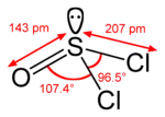 ![]() Кульково-стрижнева модель молекули тіонілхлориду | |