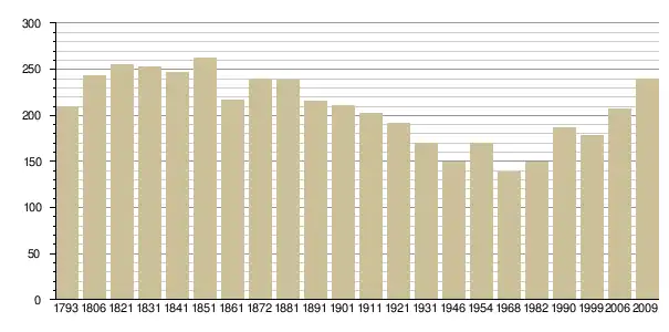 Динаміка населення (base Cassini de l'EHESS pour les nombres retenus jusque 1962[3], base Insee à partir de 1968 (population sans doubles comptes puis population municipale à partir de 2006)[4] · [5] ):