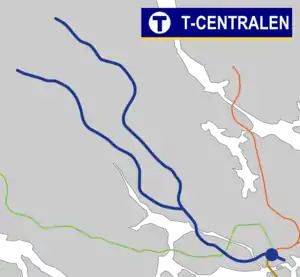 | Станція пересадки | Стокгольм-Центральний, Стокгольм-Сіті, Sergels Torg tram stationd і Т-Сентрален |
