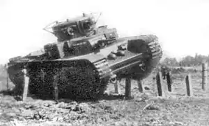 Підвіска — зблокована, по два котки у візку; підресорувана — двома спіральними пружинами. Ходова частина закрита 10-мм броньовими екранами. Танк долав підйоми крутизною до 36 °, рови шириною до 3,5 м, вертикальні стінки висотою 1,2 м, брід глибиною 1,2 м. Питомий тиск на ґрунт становив 0,78 кг/см². Водночас велике значення відносно довжини танка до його ширини (більше 3) несприятливо позначалося на його маневреності.