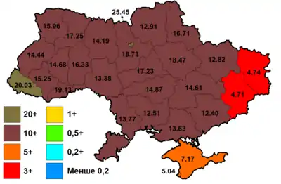 | Обласні ради та рада м. Києва[4] | 183 / 1780 |