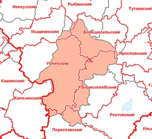 У 1862 році в Углицькому повіті було 15 волостей[4]: Великосільска, Василівська, Високовська, Заозерська, Іванівська, Малахівска, Микольська, Ново-Заозерська, Новосільська, Новська, Покровська, Усолівська, Цепелевская, Чуряківска, Якимівська.