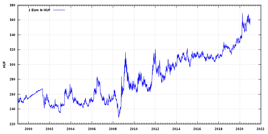| 1 EUR = | 355,8 HUF (18 лютого 2022) |