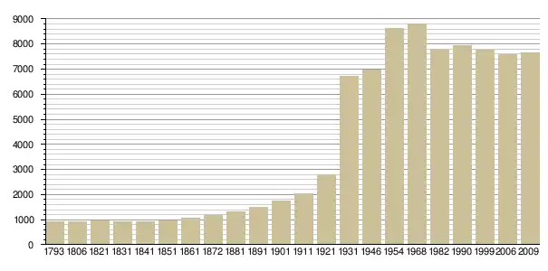 Динаміка населення (base Cassini de l'EHESS pour les nombres retenus jusque 1962[3], base Insee à partir de 1968 (population sans doubles comptes puis population municipale à partir de 2006)[4] · [5] ):