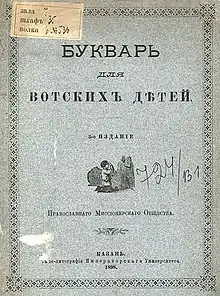 Піонером вивчення удмуртської мови був церковний діяч Веніамін (Пуцек-Григорович), митрополит Казанський та Свіязький (1775—82) та мовознавець, який був українцем родом з Лохвиці на Полтавщині. Під його керівництвом були створені промови та вірші (тексти од, кантат) не лише удмуртською, а й іншими мовами Поволжя — мордовською, чуваською і татарською, частину цих творів було виголошено й виконано в Казані 1767 року на честь прибуття туди Катерини II, а на початку 1769 вони були надруковані в Санкт-Петербурзі у збірці «Духовна церемонія» (згодом світ побачило її продовження — «Шлюб душі благочестивої»).