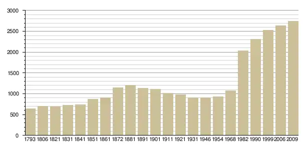 - Avant 1968 : Cassini ; depuis 1968 : recensements INSEE ; 2005 : enquête INSEE, наведено за французькою вікіпедією