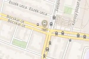 Розташована під рогом двох головних вулиць району Уйбуда — проспектів Бочкаї (угор. Bocskai ut) і Фехеварі (угор. Fehervari ut), до них приєднуються вулиці Уласло (угор. Ulaszlo) і Бараньяї (угор. Baranyai).