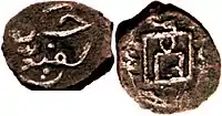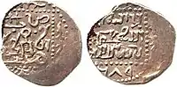 - 4) 1305 рік. На аверсі монети номіналом в 1⁄8 (Вага — 0,18 гр.) дирхами надпис у 2 ряди «Карбування Укеку», внизу віньєтка. На реверсі у крапковому колі вгорі віньєтка, нижче легенда та рік: «хабба 706»[4][5].
