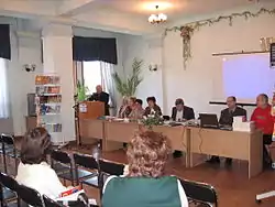 - 4. Конференції. 17 січня 2004 р. проведена планова науково-практична конференція «Культурні зв'язки Донеччини з українським зарубіжжям». Матеріали конференції випущені друком.[1] Члени Донецького товариства — учасники ряду конференцій та круглих столів з питань укр. діаспори у Києві, Воронежі, Філадельфії, Москві, Краснодарі, С.-Петербурзі.