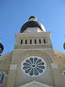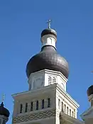 Будівля церкви — велика одноповерхова будівля з підвищеним підвалом. Фасад складений з кольорової цегли. Кладка оброблена вапняком[13]. Відмінна східноєвропейська зовнішність споруди в основному спричинена баштами з цибулеподібними вежами та вікнами з круглими дугами[4].